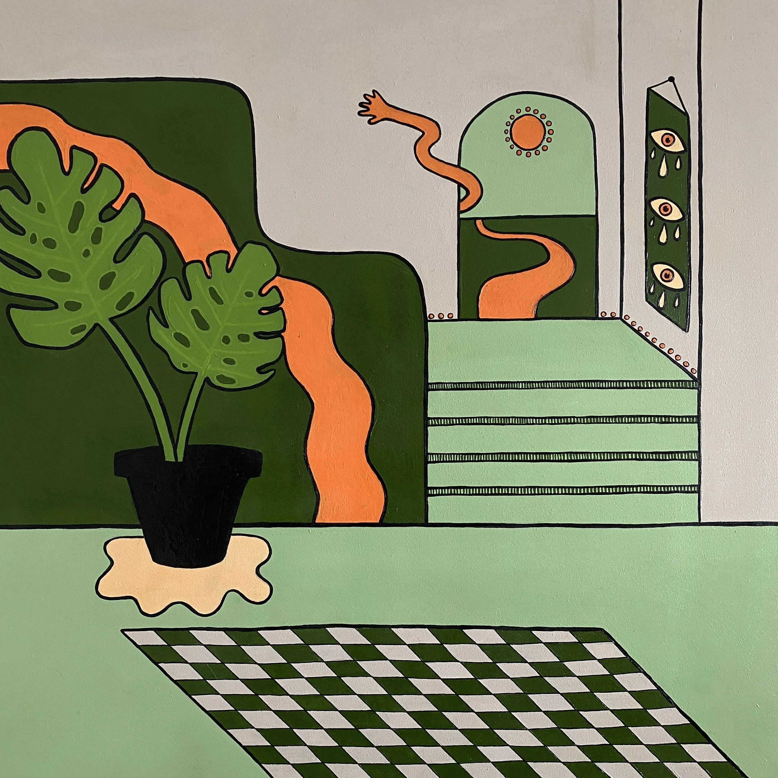steppin' out; 24 x 24 (2022) / acrylic on wood